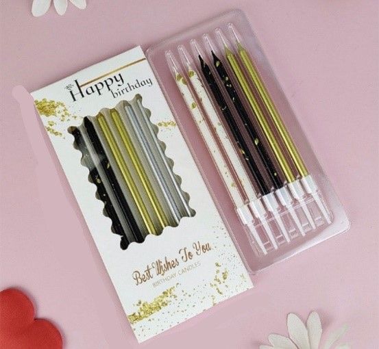 Свечи для торта 11 см (6 шт), зол/сер/пятнистые