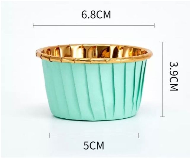Форма бумажная/капсула для капкейков (50 шт., бирюза/золото), 50*40мм