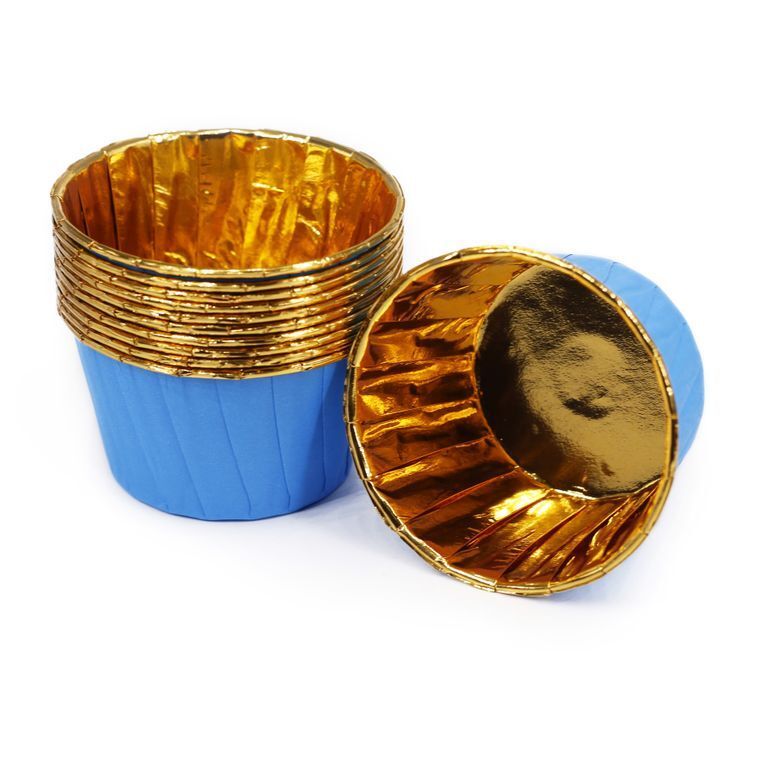 Форма для капкейков ламинированная усиленная (50 шт., голубые/золото), 50*40 мм