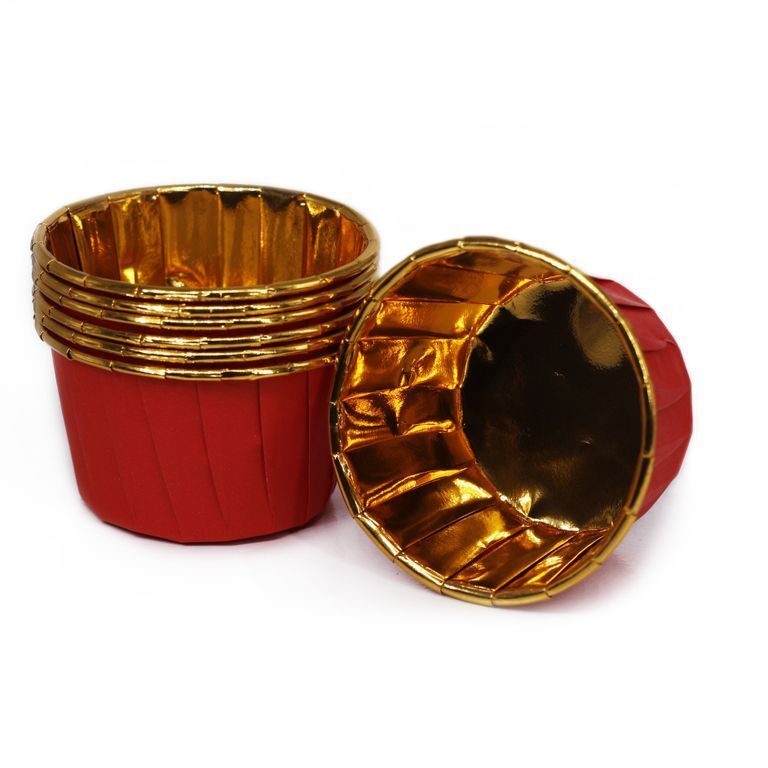 Форма для капкейков ламинированная усиленная (50 шт., красные/золото), 50*40 мм