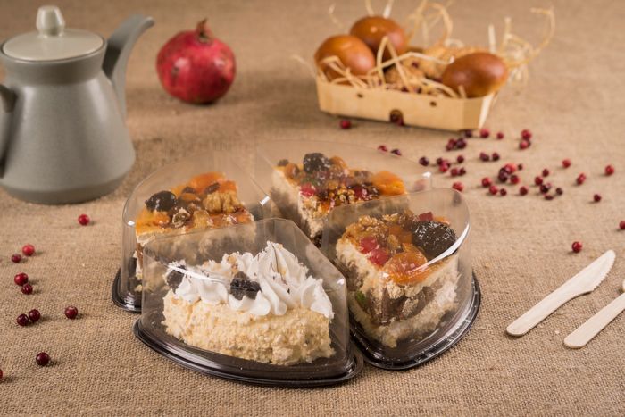 Контейнеры из прозрачнго пластика для четверти торта, для 2-3 кусочков торта, для десертов.
