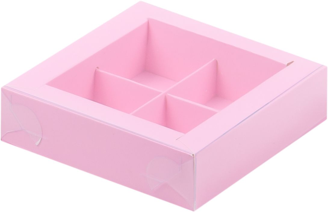 Коробка для 4 конфет с прозр. кр. (розовая), 120*120*30мм