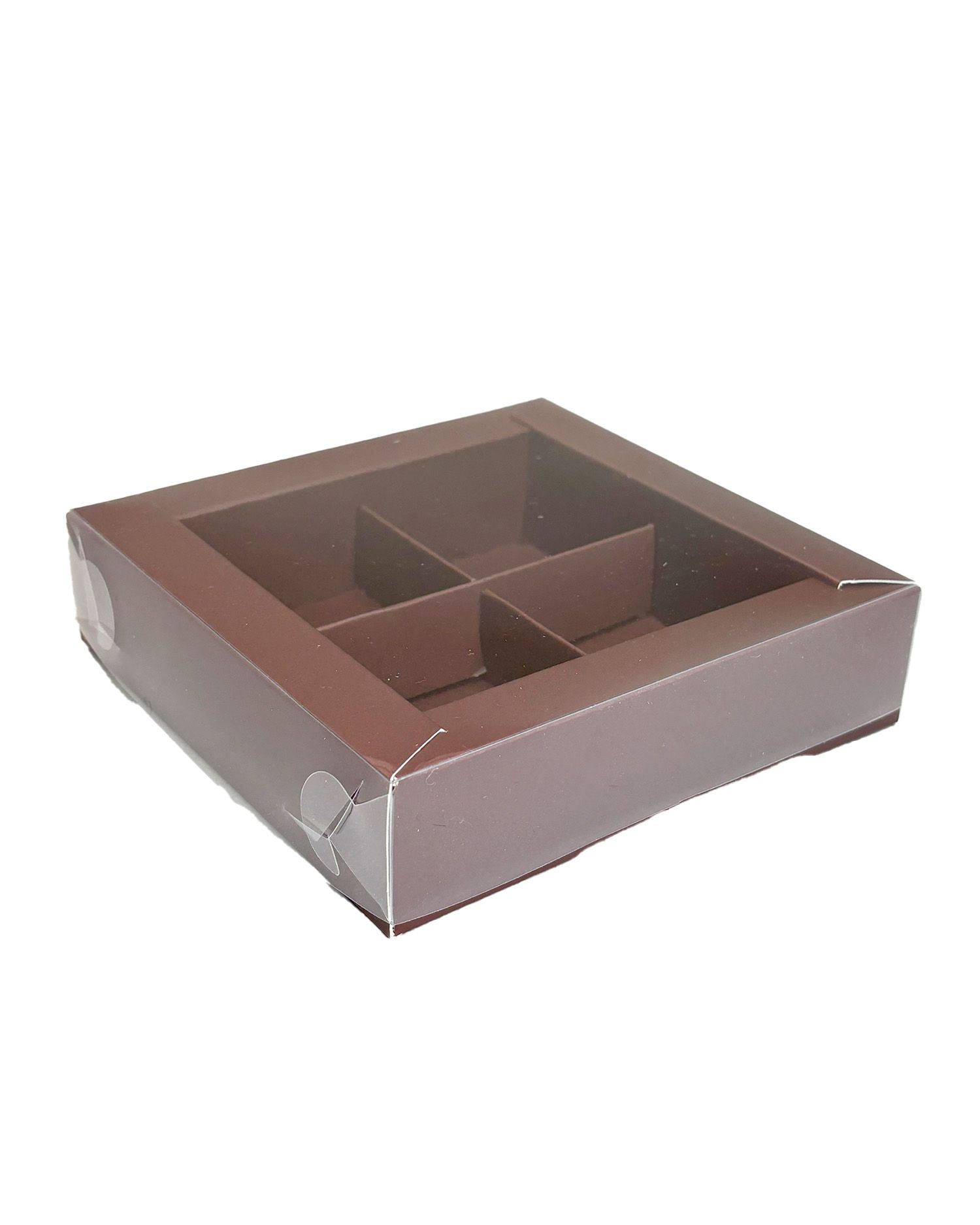 Коробка для 4 конфет с прозр. кр. (шоколад), 115*115*30мм