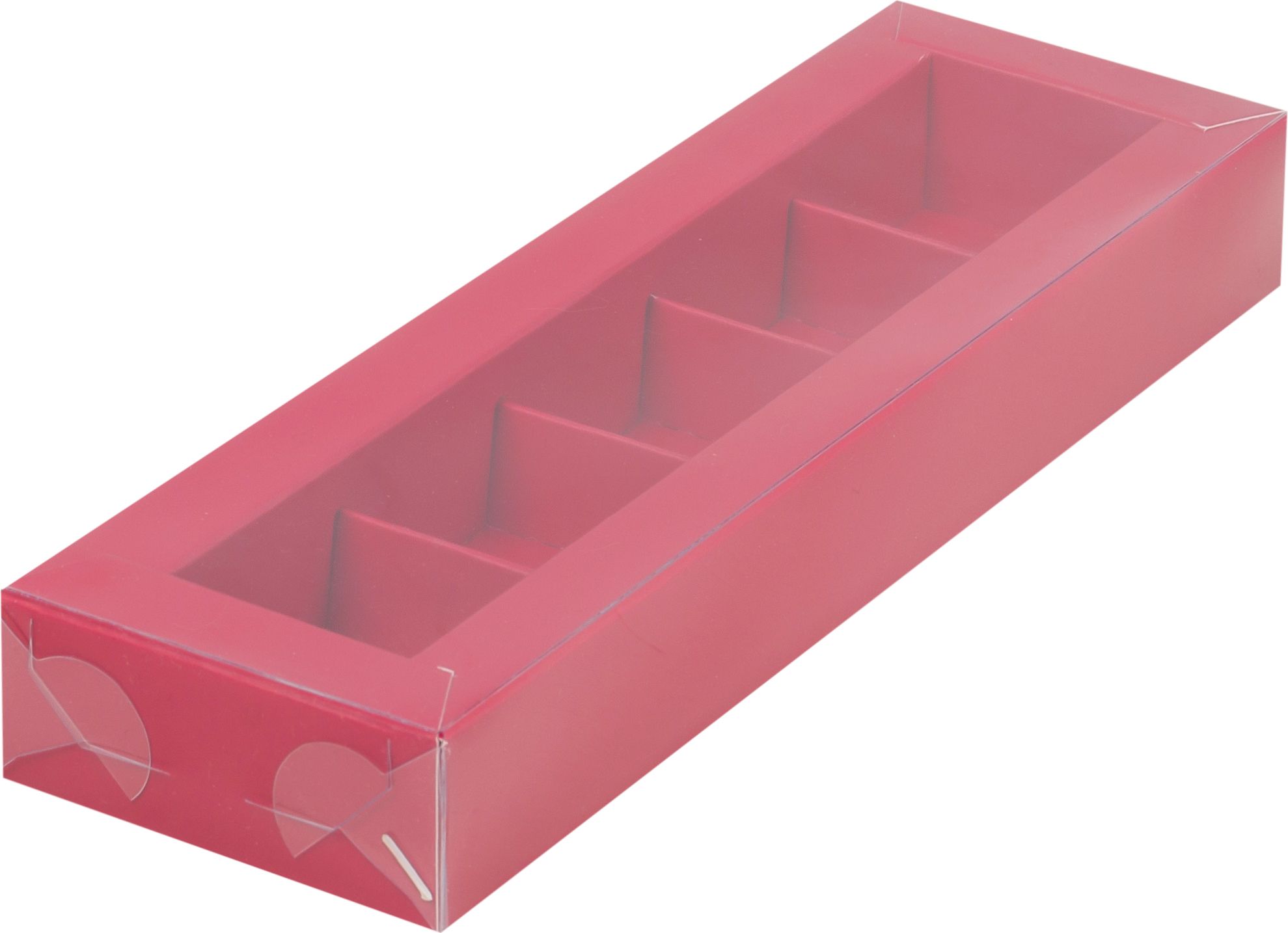 Коробка на 5 конфет с прозр. кр. (красная) 235*70*30мм