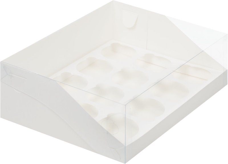 Коробка для 12 капкейков с пластик. кр. (белая), 310*235*100мм