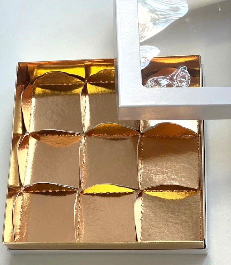 Коробка для 9 моти ПРЕМИУМ с/о (белая/золото), 180*180*45мм