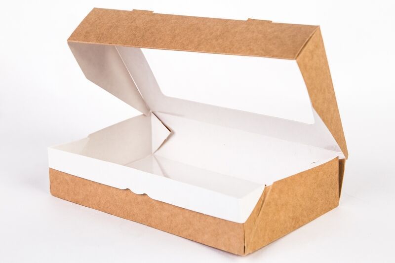 Стандартные квадратные коробки крафт с окном, предназначенные для небольших пирогов, пончиков, конфет, печенья или зефира.