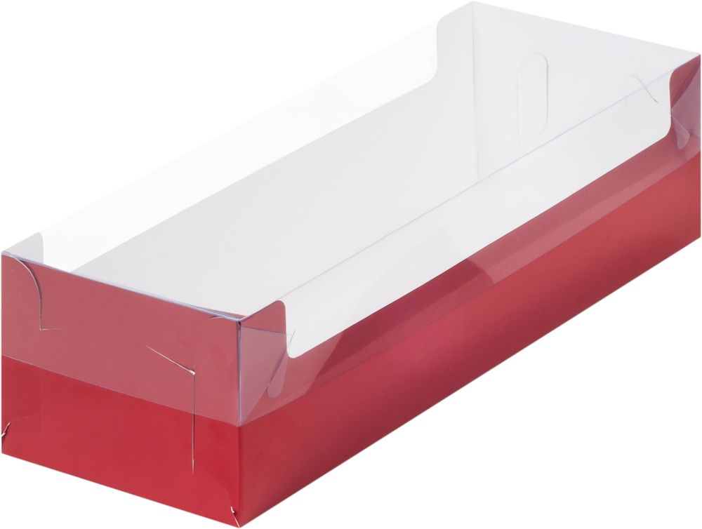 Коробка для торта рулет/полено с окном (красная) , 300*110*80мм