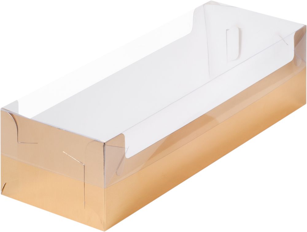 Коробка для торта рулет/полено с окном (золото) , 300*110*80мм
