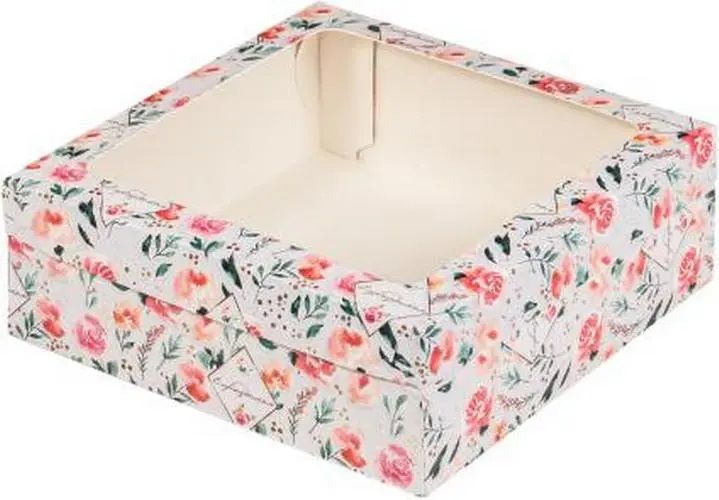 Коробка для зефира с/о (крышка-дно, принт "розы"), 200*200*70мм