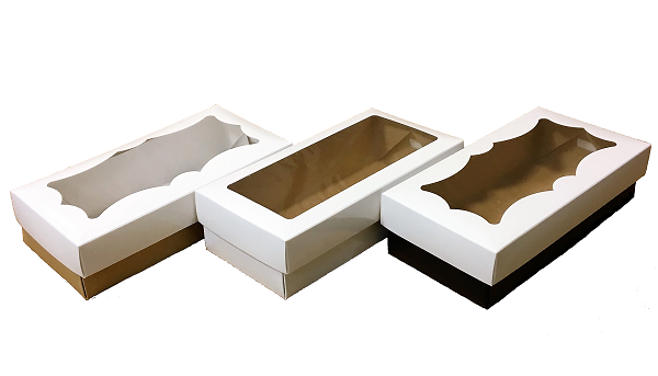 Прямоугольные кондитерские коробки для пирожных с окном.