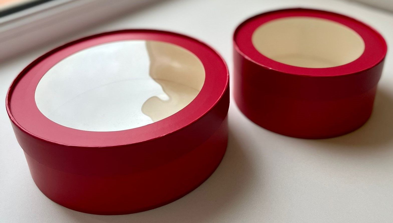 Круглые кондитерские коробки с крышкой с вклеенным окном для упаковки пирожных, макарони, зефира, шоколада, мармелада или конфет ручной работы
