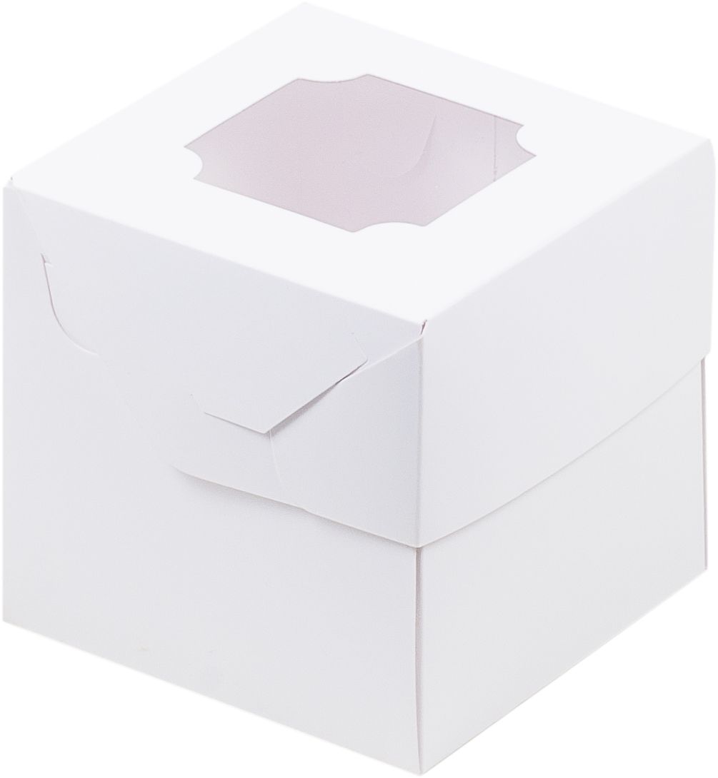 Коробка на 1 капкейк с окном (белая), 100*100*100мм