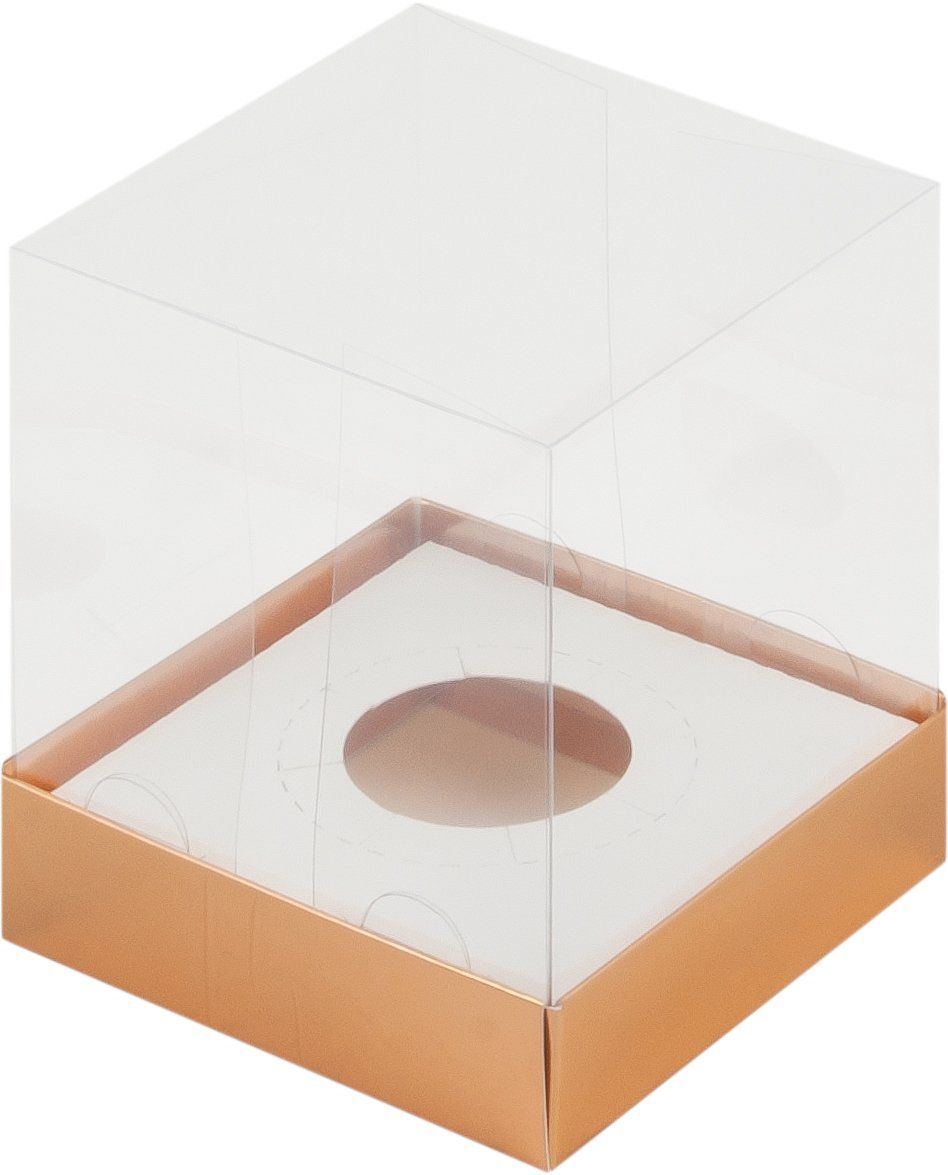 Коробка на 1 капкейк с прозр. куполом Премиум (золото), 100*100*120мм