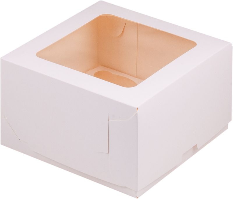 Коробка на 4 капкейка с квадратным окном (белая), 160*160*100мм