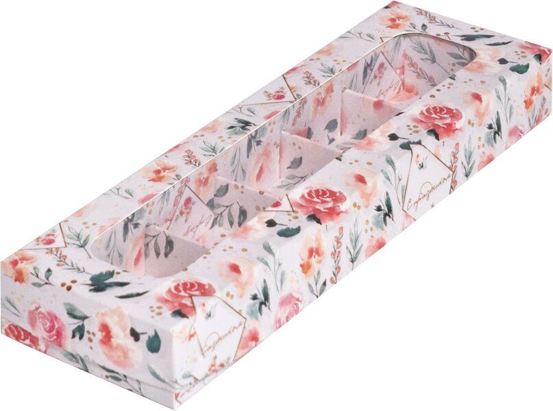 Коробка на 5 конфет с прозр. кр. (розы), 235*70*30мм