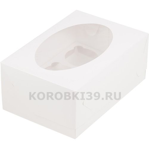 Коробка на 6 капкейков с окном (белая), 235*160*100мм