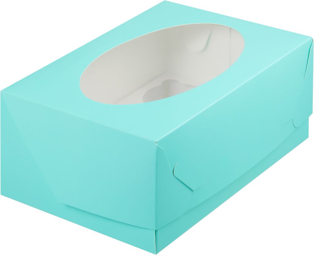 Коробка на 6 капкейков с окном (бирюза), 235*160*100мм