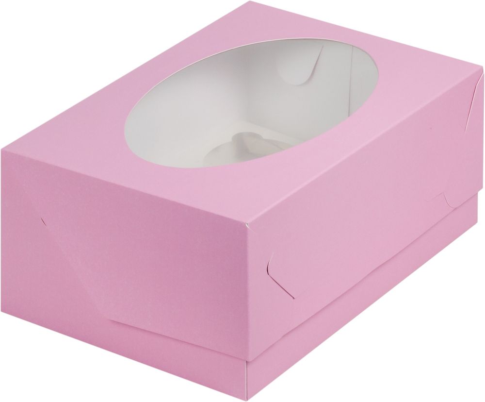 Коробка на 6 капкейков с окном (розовая), 235*160*100мм
