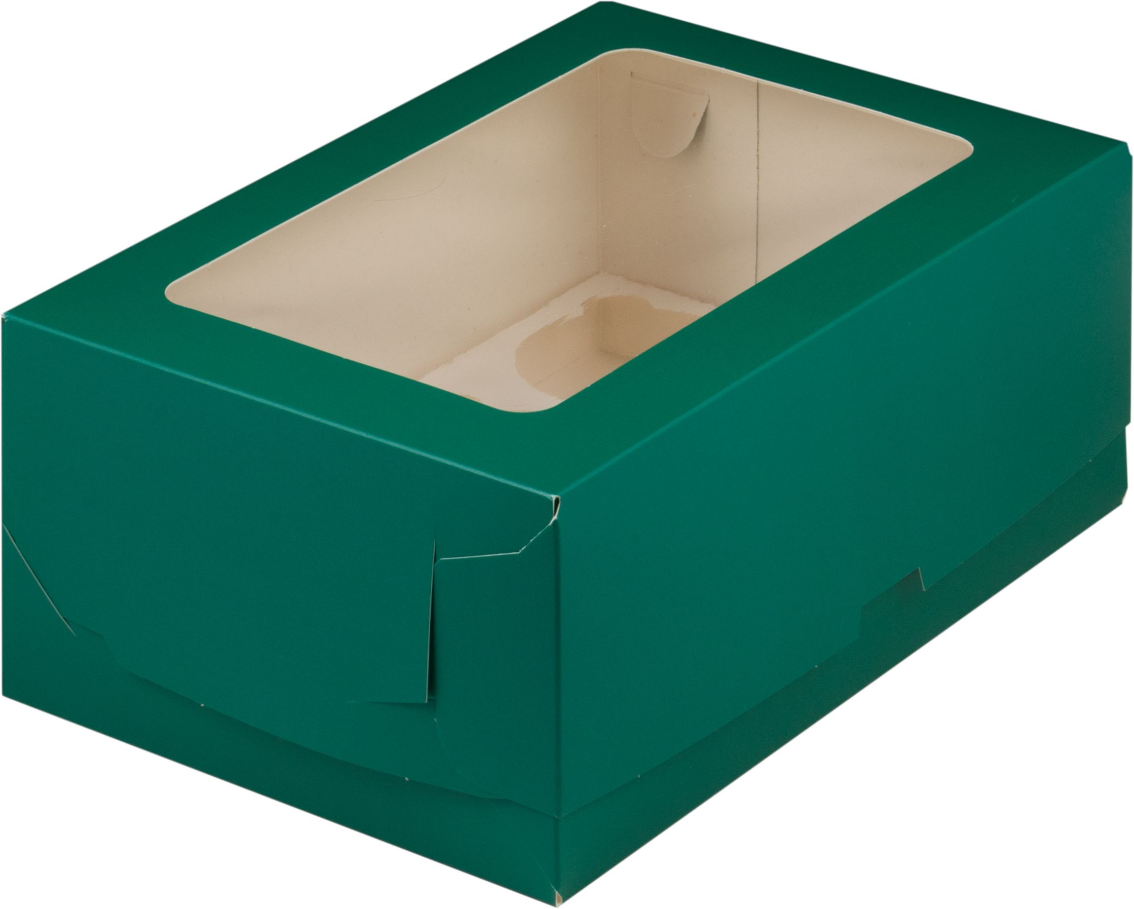 Коробка на 6 капкейков с прям. окном (тем. зеленая), 235*160*100мм