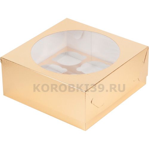 Коробка на 9 капкейков с окном (золото), 235*235*100мм