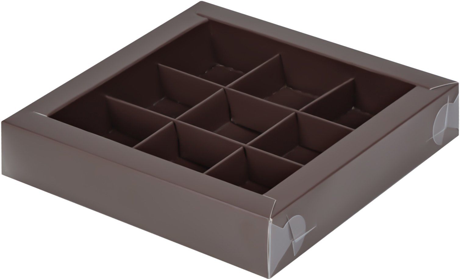 Коробка для 9 конфет с прозр. кр. (шоколад), 155*155*30мм