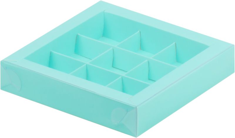 Коробка для 9 конфет с прозр. кр. (бирюза), 155*155*30мм