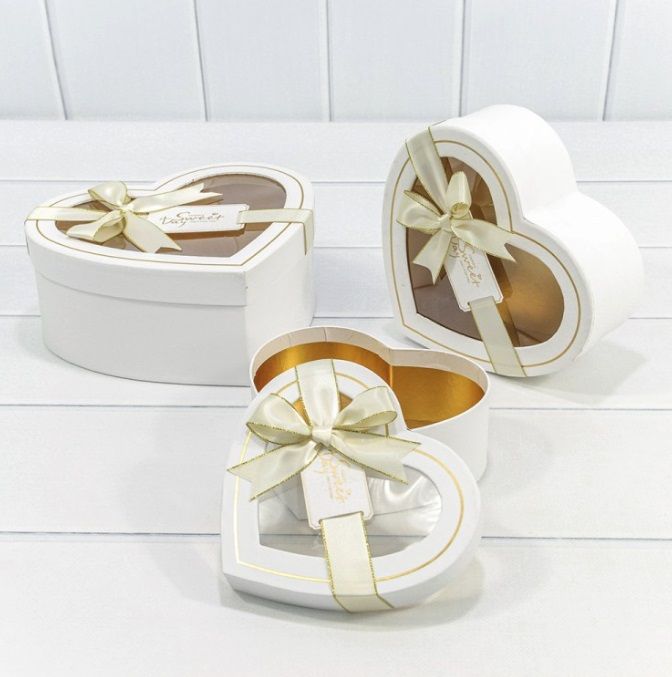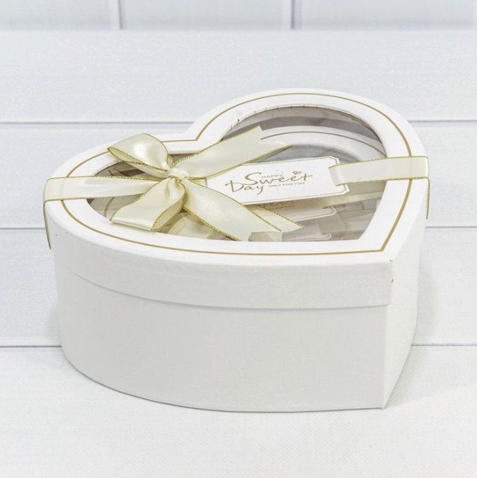 Коробка подарочная "Сердце" с окном и бантиком (белая), 22,2*19,5*9см