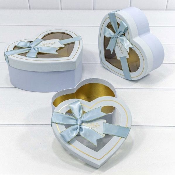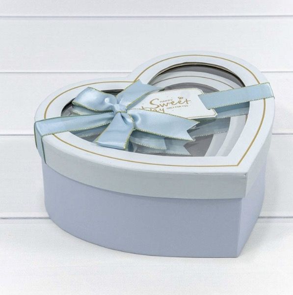 Коробка подарочная "Сердце" с окном и бантиком (голубая), 16,2*14,3*6см