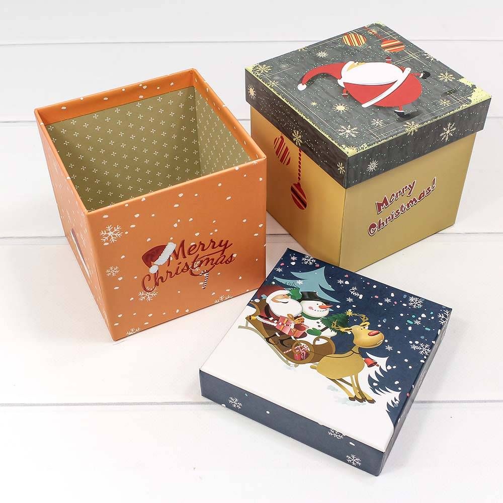 Квадратные коробки с праздничным принтом "Рождество" (микс)