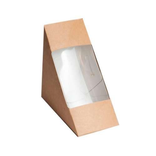 Коробка (упаковка) с окном для сэндвичей из картона крафт и ламинацией внутри.