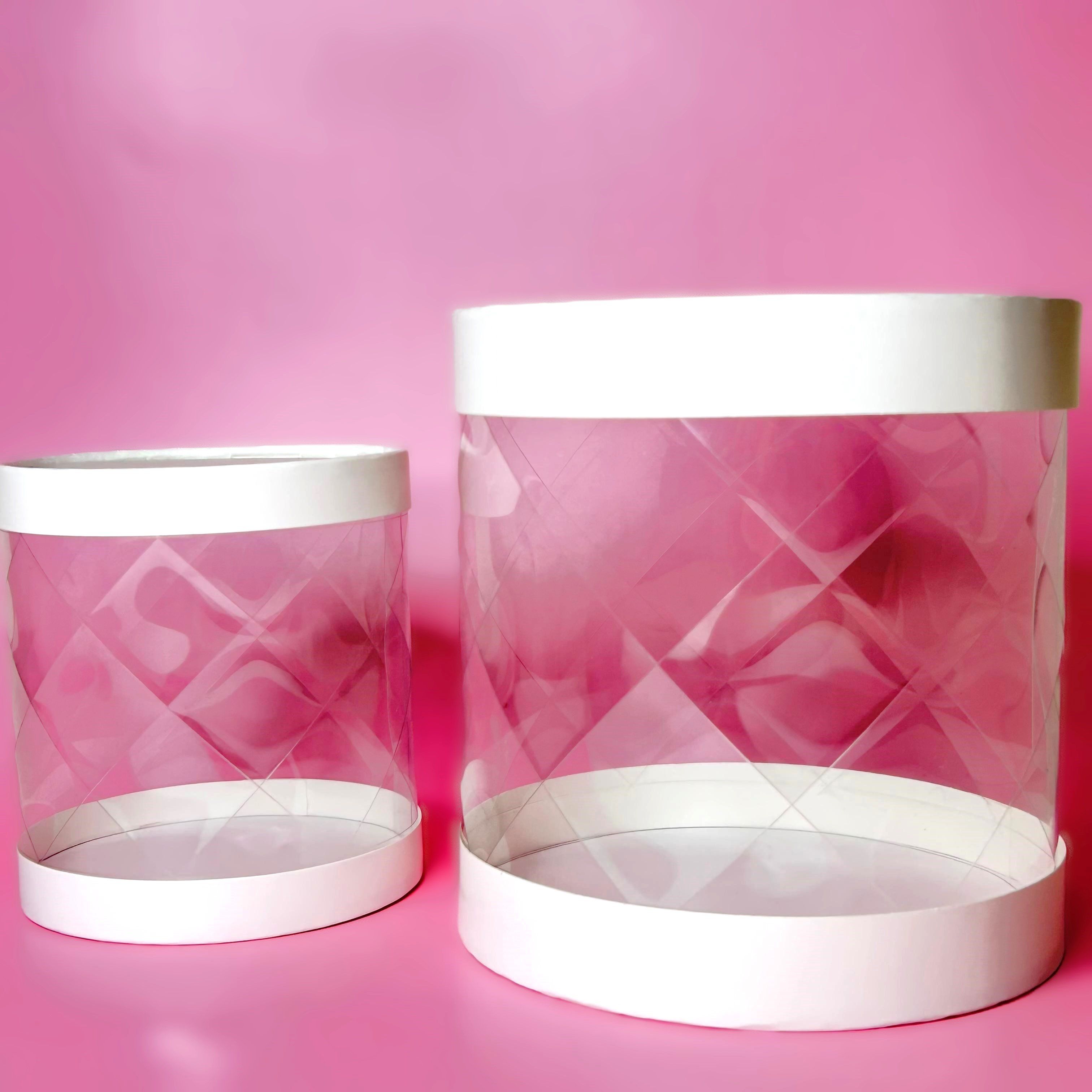 Круглые коробки-тубусы, предназначенные для бенто-тортов, с полностью прозрачной боковиной с узором