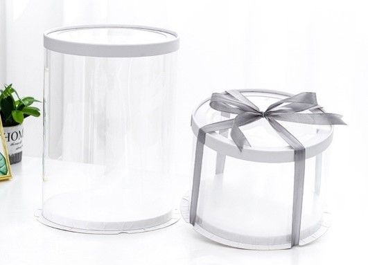Круглые коробки-тубусы, предназначенные для тортов, с полностью прозрачной боковиной