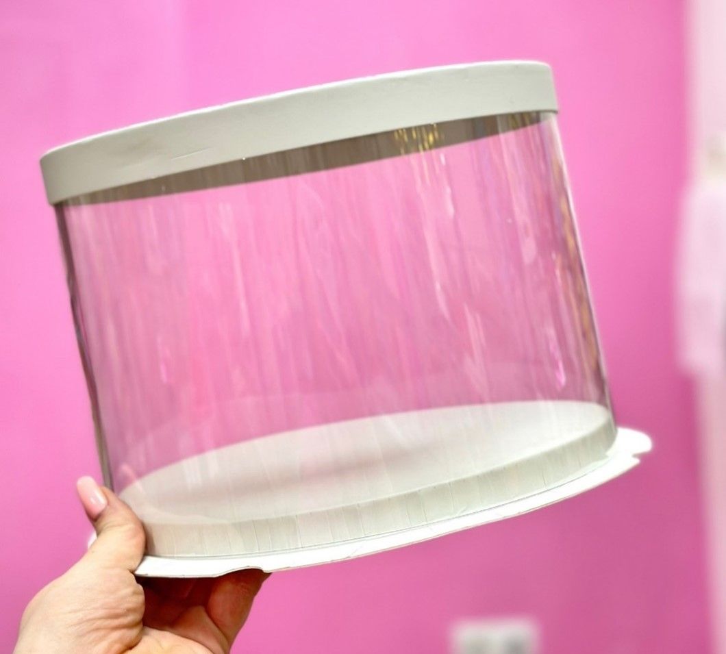Круглые коробки-тубусы, предназначенные для тортов, с полностью прозрачной боковиной