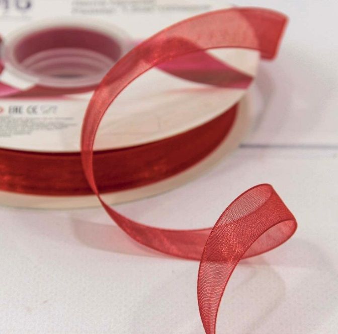 Лента органза 15мм (красная), 91,4м