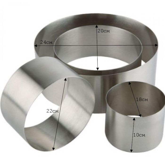 Набор колец для выпечки 18, 20, 22, 24см, выс. 10см (металл)