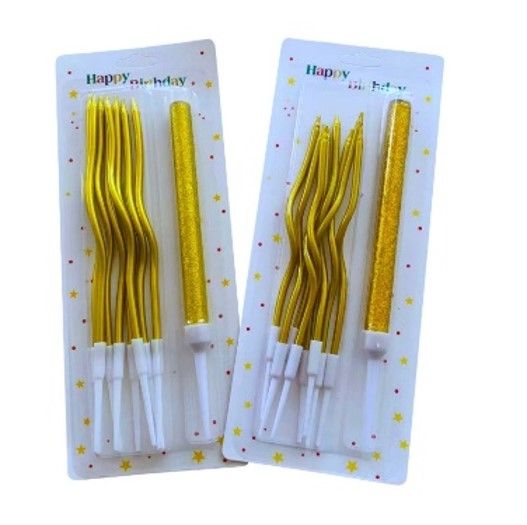 Набор свечей для торта спираль золото (8 шт) + свеча фонтан (1 шт)