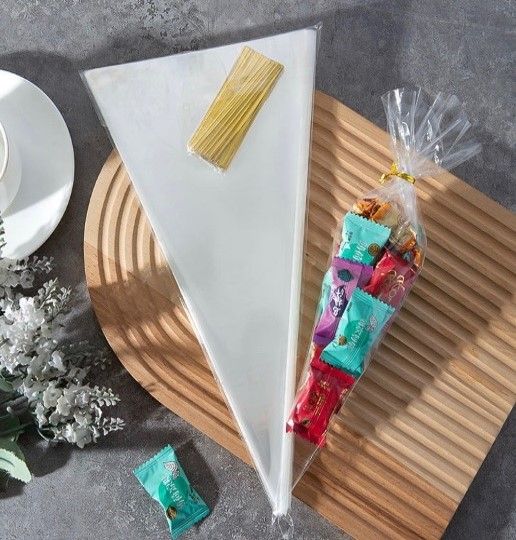 Упаковочные пакет-конус из прозрачного полипропилена подходят для упаковки кондитерских изделий: меренги, леденцов, безе, конфет и т.д., для декора можно использовать вафельные рожки. Пакет придаст оригинальный вид вашему изделию и защитят от лишнего внешнего воздействия.