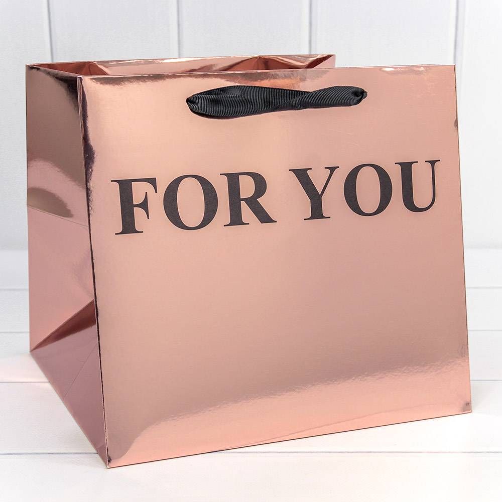 Пакет подарочный "FOR YOU" с/лам. (роз. золото), 25*23*25 см