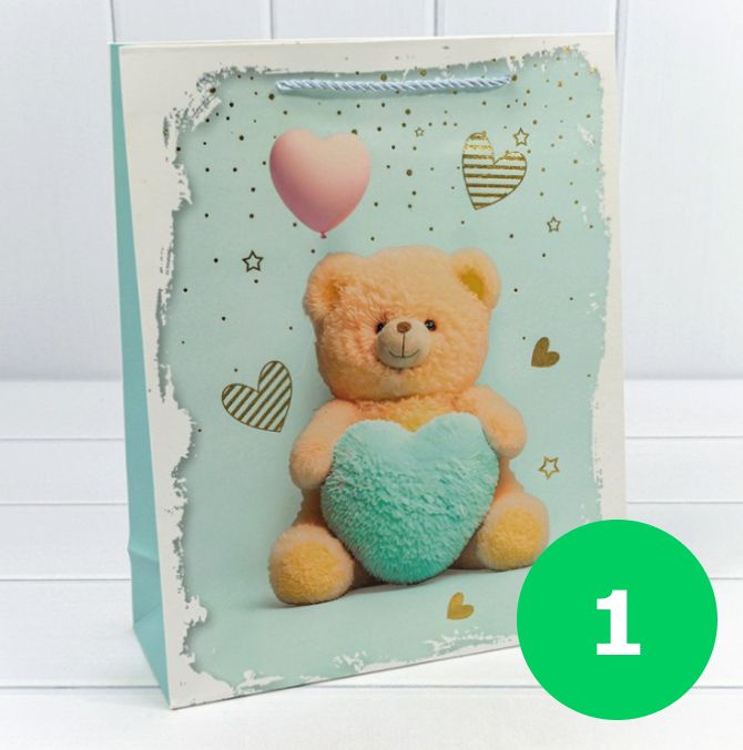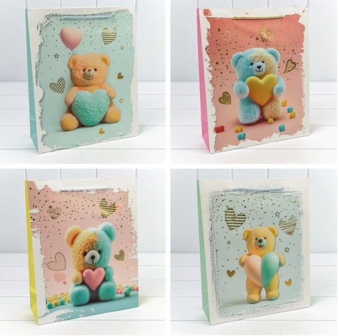 Пакет подарочный "Мишки" (микс), 26*32*10см
