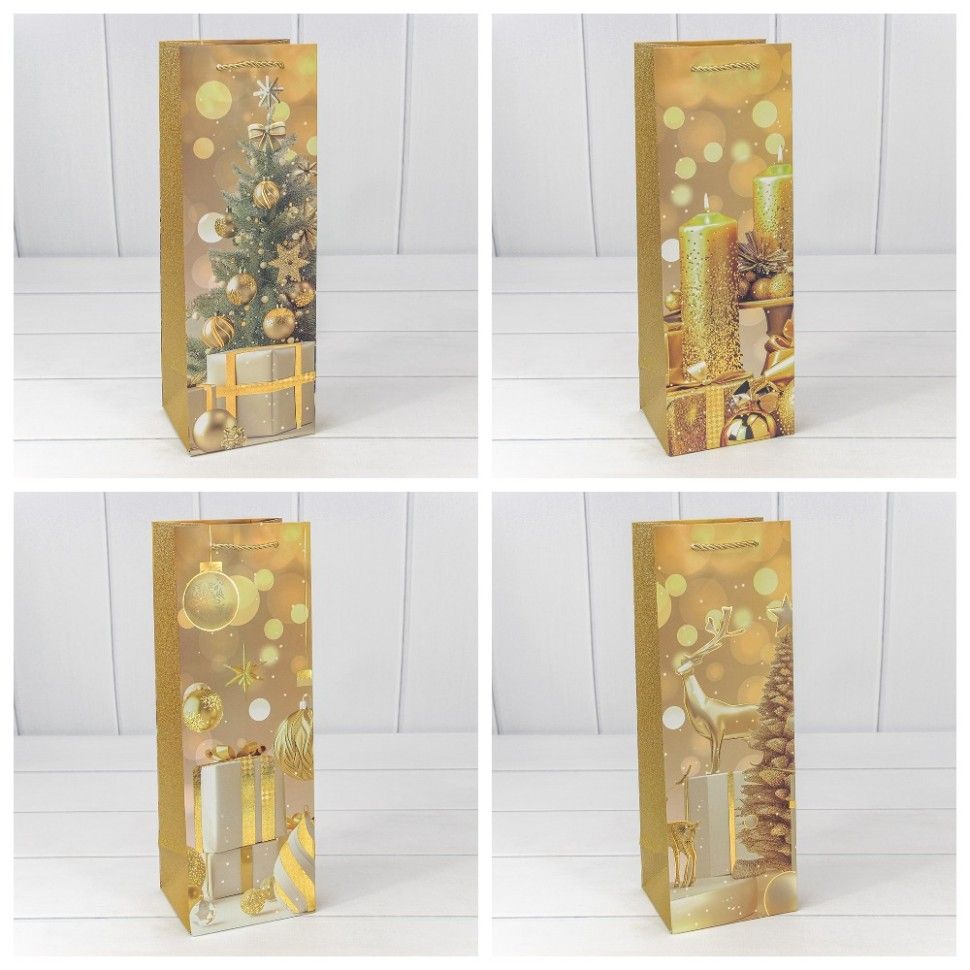 Пакет подарочный д/бут "Новый Год" (микс), 11,5*35*9см
