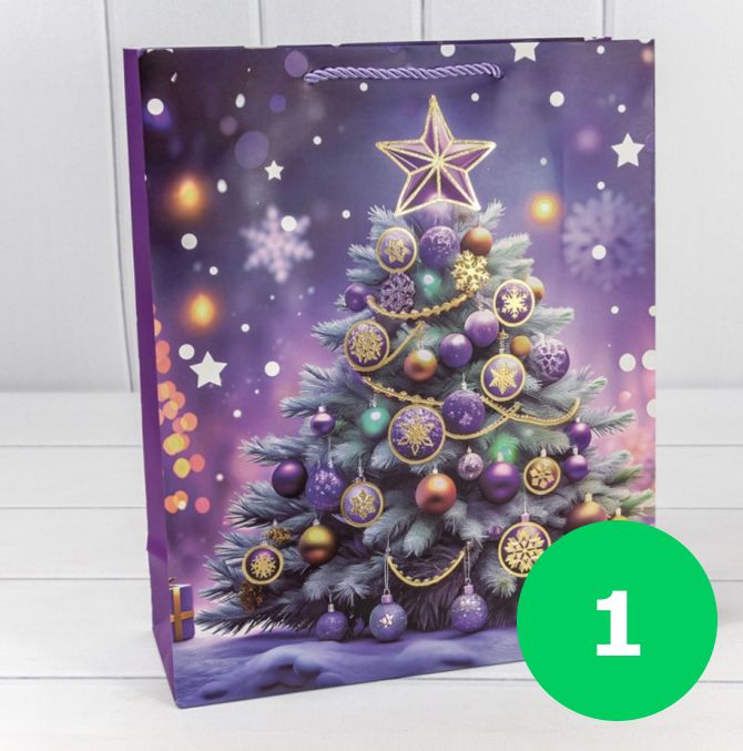 Пакет подарочный "Новогодний" (микс), 26*10*32см