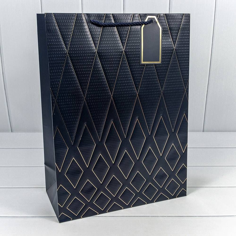 Пакет подарочный "Ромбы" (синий), 31*42*15 см