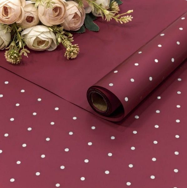 Пленка матовая в рулоне "Мелкий горошек" 65мкм (винно-красная), 58см*10м