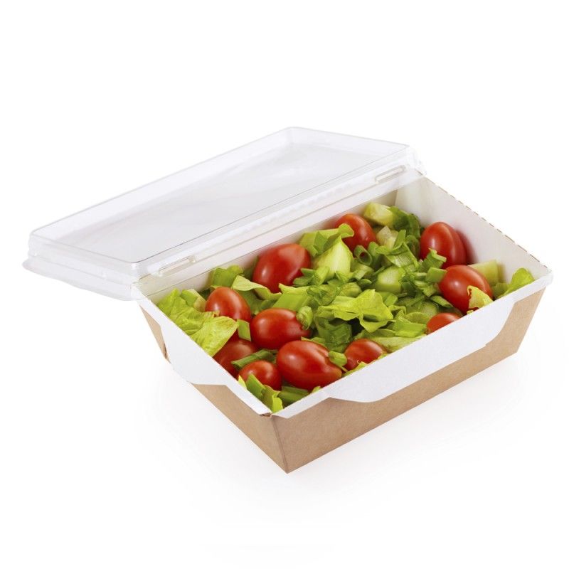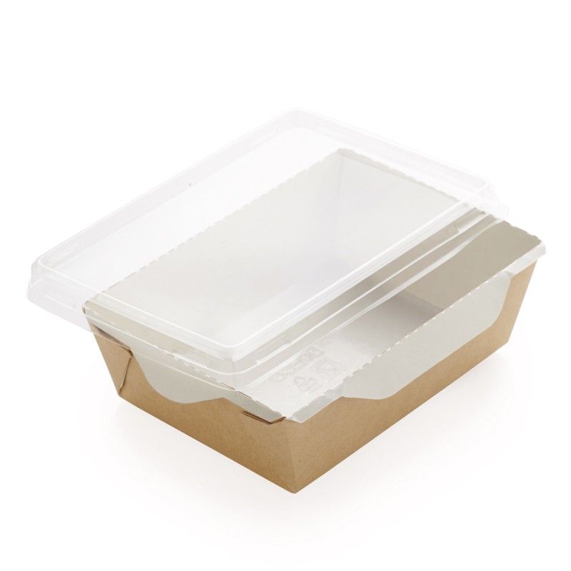 Коробка (упаковка) с окном для холодных и горячих блюд из крафт картона, с прозрачной крышкой и ламинацией внутри.