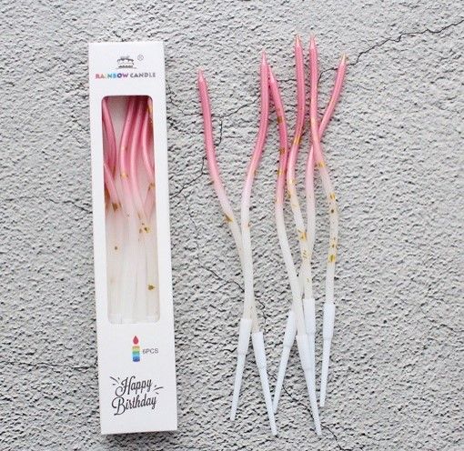 Свечи для торта волна 16,5 см (6 шт) розовый градиент/золотые пятна