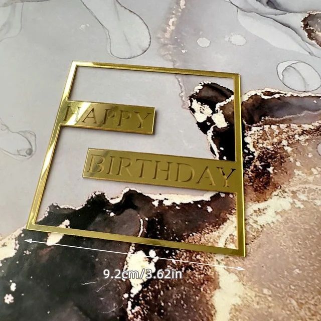 Топпер акриловый Happy Birthday №2 в рамке (золото)