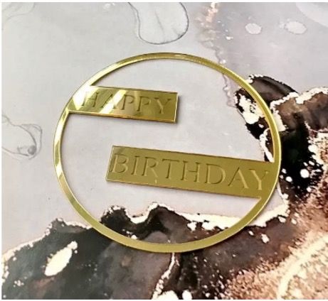 Топпер акриловый Happy Birthday №3 в рамке (золото)