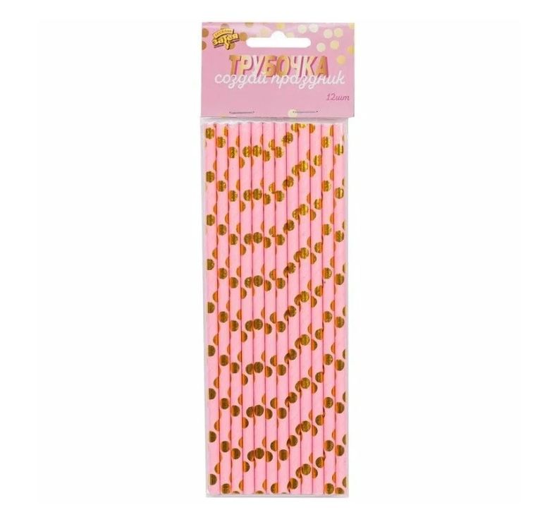 Трубочки бумажные для праздника (золото/розовые, 12 шт./уп.)